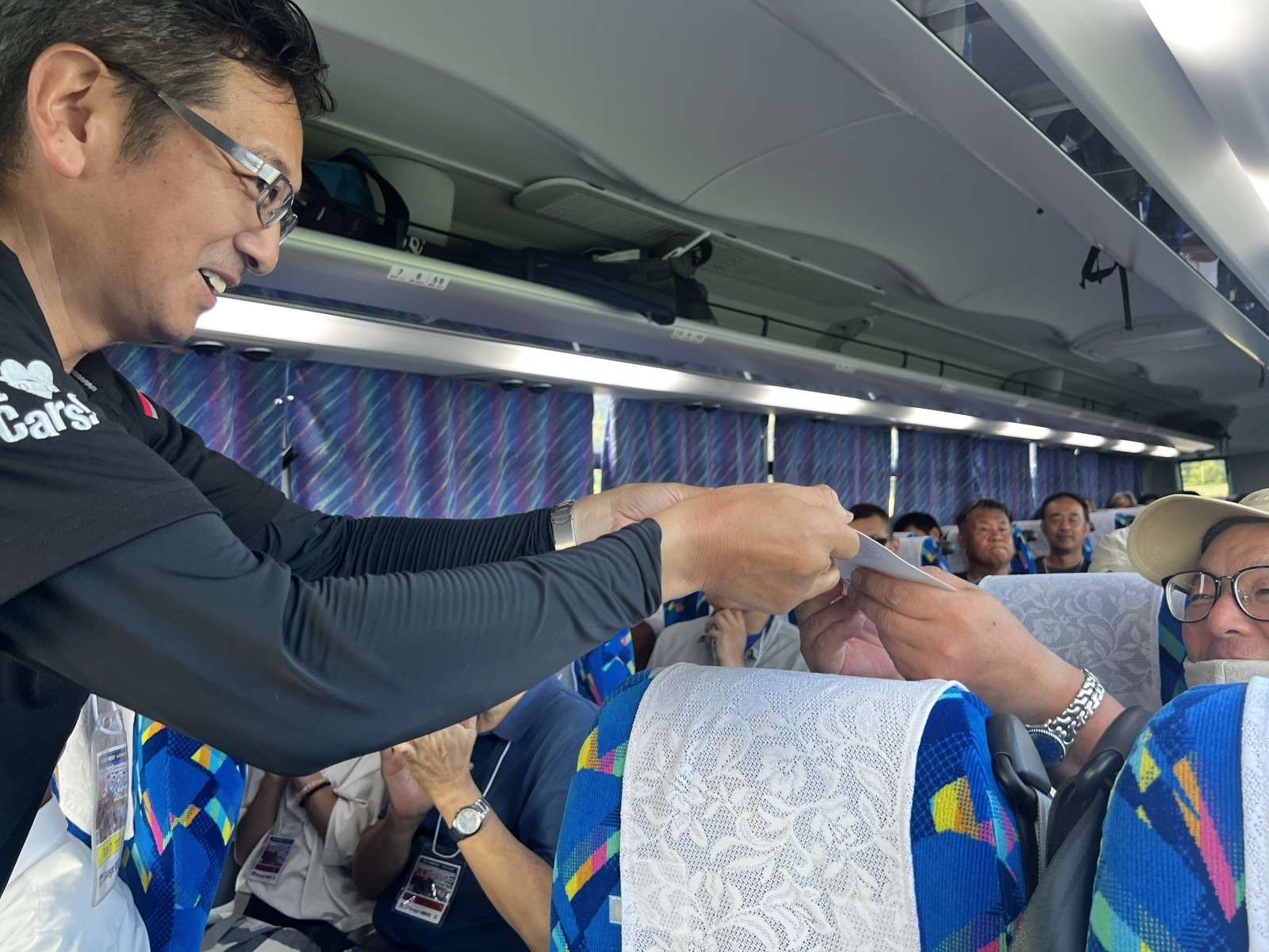 観光バスは京都駅を出発し、ナガシーの軽快なトークで車内を盛り上げつつ、会場の『高島市今津総合運動公園 サンルーフ今津』へ向かいます。