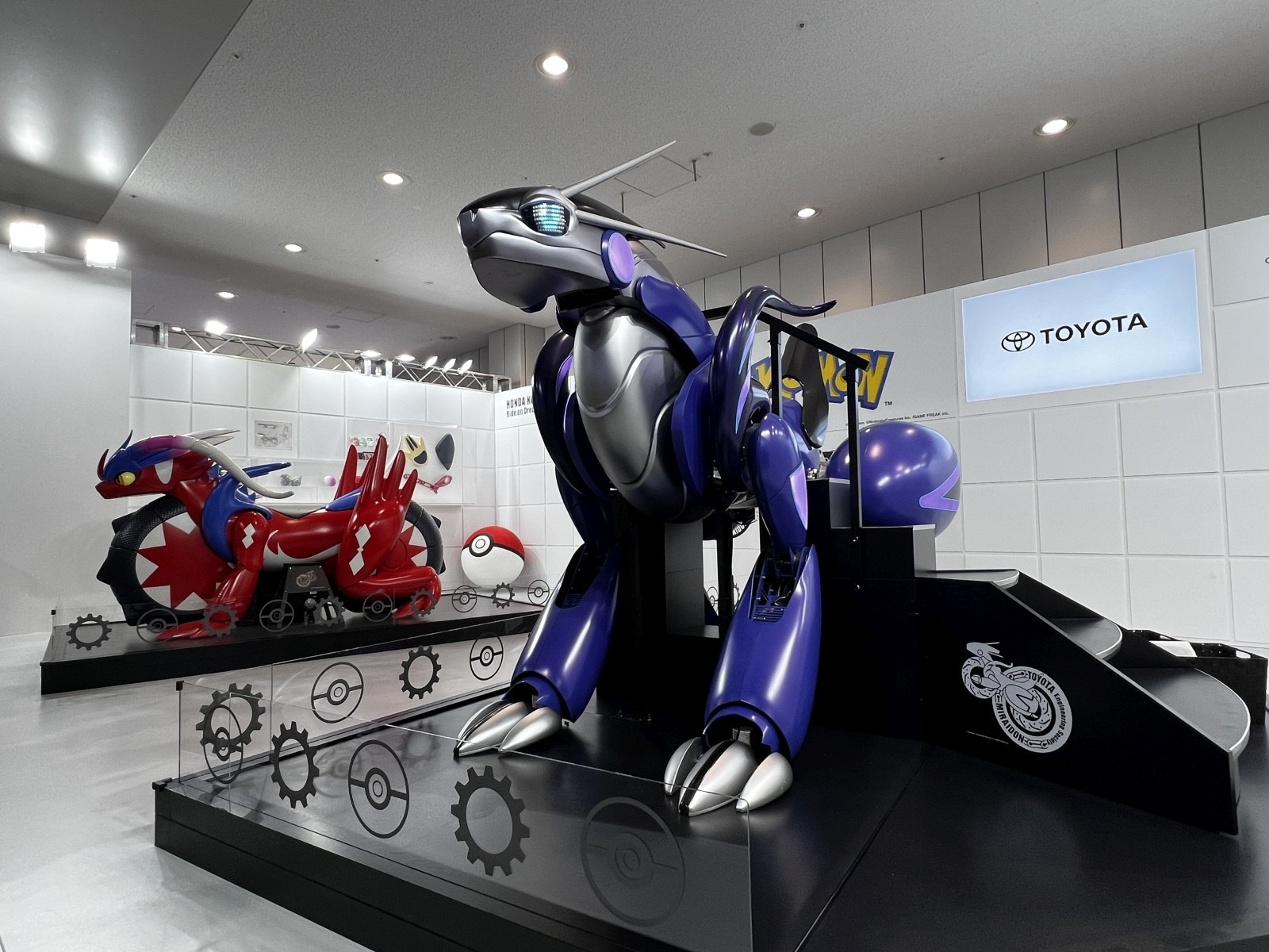 「Tokyo Future Tour 2035」で展示されていた、ポケモンとトヨタ自動車、本田技研工業のコラボレーションにより誕生したモビリティ「トヨタミライドン」と「ホンダコライドン」。